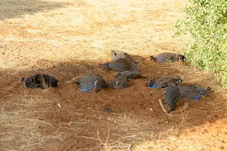 Pyha, nu var vi kommet til det der kedelige tidspunkt hvor det nu var sidste gamedrive på turen, jamen det er bare ikke fedt…. Det blev så endnu et anderledes gamedrive, vi startede ud med at køre langs floden, der sad en stribe gribbe… og de blev siddende. Endnu en pæn flok af de smukke impalaer kom vi forbi, inden vi tog den stejle opkørsel til den knastørre slette ovenfor, sjældent har vi været i så meget støv som her i går…. Nu havde vi en skøn udsigt over floden og lodgen til den ene side, og kæmpe støvskyer på den anden, det var blæst op! Grunden til at det var blæst op var så at der var byger på vej, så inden længe måtte vi stoppe for at få taget slået ned, lidt øv for os, men godt med regn her. Ny situation at skulle side ned og bare kigge ud af vinduerne, ville vi nu se noget? Jow jow, tro det eller lad være , vi så endnu en leopard! Jaja, det var en leopard skildpadde, og den var ude at nyde regnen.
